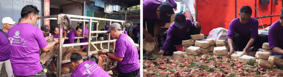 Beberapa dokumentasi kegiatan qurban kami memperlihatkan proses penyembelihan, kebersamaan relawan, serta senyum para penerima manfaat saat menerima daging qurban. Dokumentasi ini menjadi bukti nyata bahwa amanah qurban yang dititipkan disalurkan dengan sebaik-baiknya.